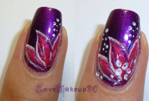 Eccomi con una nuova nail art! Questa volta ho scelto come colore base un bellissimo viola melanzana metallizzato e ho deciso di decorare solo anulare e pollice con un fiore. Realizzarla è davvero semplice!